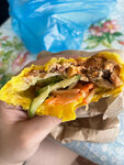 Решили попробовать в данной забегаловке шаурме, просто УЖАС!! Мясо отвратительное старое, и его там почти нет, одна морковка , на фото видно, что она полупустая