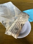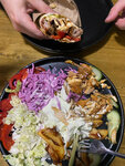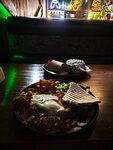 Брали английский бургер и шаверму на тарелке Бургер хорош, правильно собран и прожарен Шаверма отличная, много овощей, курица в меру жирненькая, картошка свежей обжарки Что ценно - было классно и нажористо, но без изжоги и тяжести после Пожалуйста, добавьте опцию "соусы отдельно", потому что по описанию казалось, что их подадут в отдельных коробочках как к бургеру, а не сразу польют еду