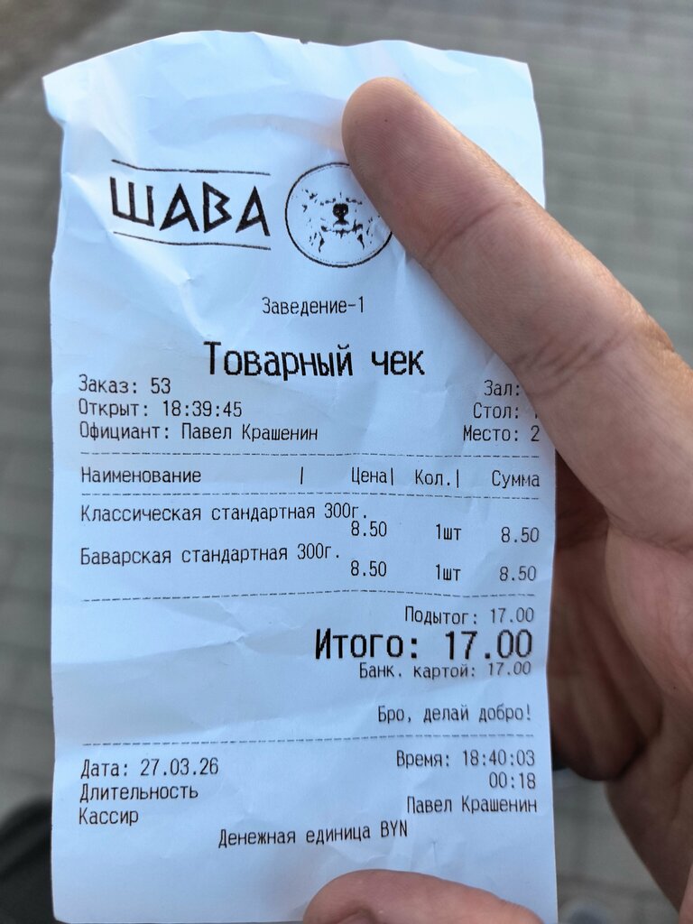 If it were possible to give this shawarma a score of 0, I would. There is no filling at all, we took classic shawarma and Bavarian, So in the Bavarian sausage there are 2 cucumbers for the whole shawarma. There is also practically no cabbage, that is, they regretted it corny, even cheap vegetables. There's so much sauce in the Bavarian sauce that my clothes got dirty. Score 0 shawarma out of 0, the worst shawarma I've ever seen in the city. 🤮