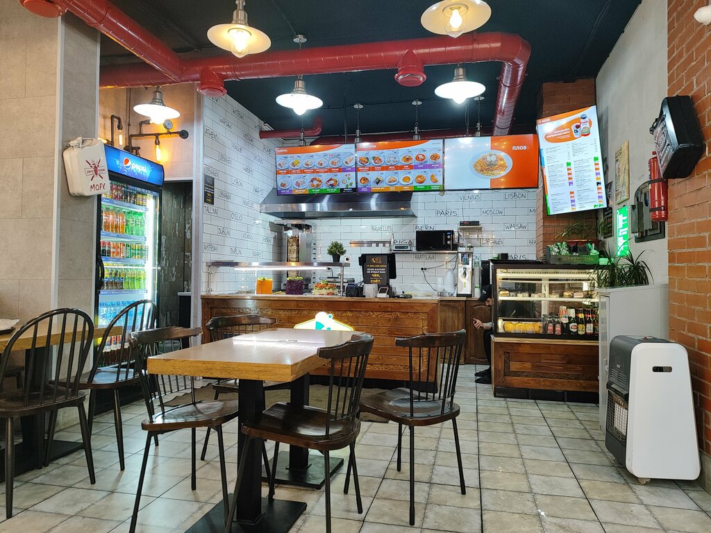 Интерьер интересный, чисто. Народу немного, долго не стояли в очереди. Заказывали несколько раз разную шаверму- всё достаточно быстро и вкусно приготовлено.