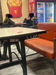 Быстрое обслуживание, более менее вкусно но за цену 340.р шаверма на тарелке должно быть порции больше. Так же капучино за 130рублей, это просто треш вода с молоком, кофе и не пахло. Когда девочек нет на кассе повар пробивает заказ на кассе в перчатках, и потом в них же делает шаверму. У повара очень большая борода, которая почти свисает в тарелку, и нет ни какой повязки на бороду. Считаю если хозяин заведения дорожит клиентами, бизнесом и репутацией и ориентирован на клиентов. То ему нужно поменять работу заведения по стандартам обшепита