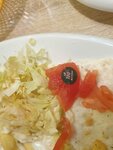 Не ждал конечно идеала, но и на это не рассчитывал. А моют ли в принципе овощи которые попадают в блюда, если ответ да, то сначала тот кто мыл этого не увидел, потом тот кто нарезал, и потом тот кто накладывал. Что именно, см фото. На мою фразу "Поварам скажите, чтобы повнимательнее " . Получил ответ "хорошо". И все Карл, всё!! Рекомендую хозяевам заведения быть построже к персоналу, считаю что находится в зоне приготовления блюд в верхней одежде, недопустимо. Там много недостатков, но есть откровенные "залеты". Еда по вкусу более менее.