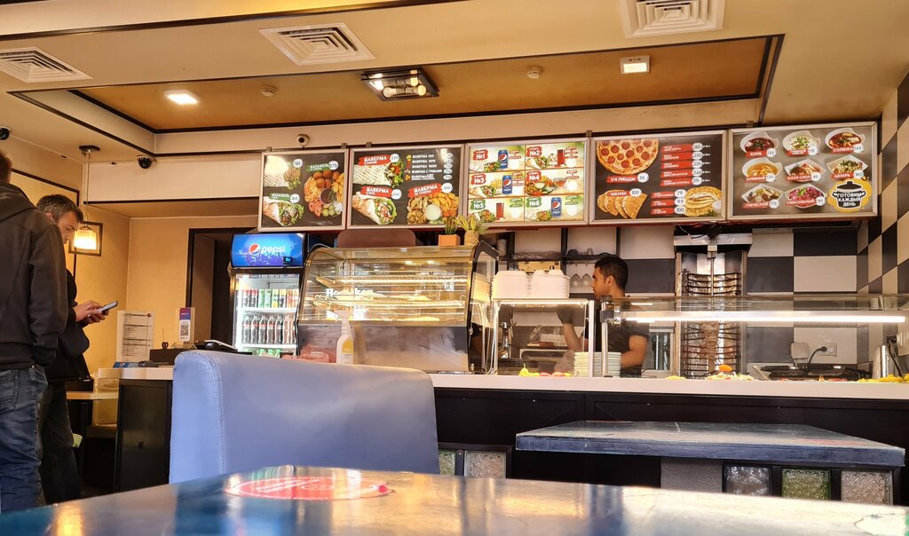 Плюс: самая обычная шаверма, без вкусовых изысков, просто перекусить. Минусы: медленное обслуживание. Замызганная потертая обстановка. Грибы в шаверме с грибами оказались пресными. Подносы, на которых подают шаверму представляют биологическую опасность. Их похоже не мыли и не обрабатывали с доковидных времен. Взяв такой поднос очень, ОЧЕНЬ хочется помыть руки. Ценники кажутся недорогими, но как раз соответствуют размерам. Если не умираете с голоду, найдите другое место.