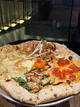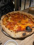 Продолжаем вместе с сестрой тур по заведениям итальянской кухни столицы. She - кафе из семьи WRF, совмещающее итальянскую и японскую кухню. Были в филиале на Большой Никитской, были два раза. Интерьер - прекрасен. Любованием самим заведением можно наслаждаться не меньше, чем едой. Плюс открытые кухни. Из минусов - местами столики плечо-в-плечо к соседним, но такой уж сейчас, к сожалению, тренд, такая нагрузка на заведения. She действуют по принципу меньше блюд - больше качества. Что последние годы чаще всего оказывается оправданной тактикой. Например, в меню всего пять пицц, и все три, что мы пробовали - отличные. Все пиццы сделаны, как положено, в печи, на вкуснейшем профессиональном тесте, а корочки аппетитно хрустят. Диаволо с чоризо - великолепна. В меру острая, идеальная по степени запекания, колбаса отличная, и её не жалеют; основа вкусная. Четыре сыра - возможно, лучшая, что попадалась из аналогов столица. Сыры идеальные, "дорогих" сыров не жалеют, вкус сбалансирован. Курица терияки, шпинат и трюфельное масло - как бы я скептически не относился к пиццам с курицей, эта меня удивила. Очень необычное сочетание, очень вкусно. Отдельный респект за граммовки. Пиццы стоят стандартно для центра столицы (850..1000 на ноябрь 2025-го), и они большие. Немного мрачная ситуация с напитками. Цены высокие (на напитках зарабатываем, а пицца - для души), но кофе - довольно сильно уступающий спэшлти-заведениям, а какао что-то совсем уж дёшево и грустно. Обслуживание шустрое и ненавязчивое, персонал вежливый. Однозначно рекомендую She к посещению. Придём ещё, надеюсь, не раз.