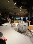 Отзывчивый персонал, мы приехали за 40 минут до нашей брони, нам не отказали, нашли столик. Доброжелательная официантка, внимательная и всегда поблизости. Очень понравилась концепция открытой кухни, но вот выдаваемые блюда стояли там, где ходят люди, плюс небольшой сквозняк, отсюда и жалобы, что блюда чуть теплые. Чувствуется профессионализм поваров, они стараются. НО, увы, сами рецепты блюд не до конца продуманы, не доведены до ума. Вроде вкусно, но на один раз, просто поесть. Понравилось сезонное инжирное меню с инжирной картой, но к 18.30 инжир закончился. Вино.. Заказывала бокал 150 гр. грюнер вельтлинер, по вкусу это было что-то грузинское, грюнер я люблю и знаю его вкус. Ну и 150 гр. в бокале не было. Промолчала, т.к. не хотела портить настроение имениннику. Не понравилось, что столики очень близко стоят друг-к другу, хотя вид на улицу шикарный. Не понравилось, что в туалете полумрак, подкраситься невозможно. Сидение на унитазе разболтанное, и в целом, кабинка выглядела неопрятно. Но набор: жидкое мыло, крем, антисептик Овсянников был в наличии. В целом, ожидала немного больше, бог с ним, с комфортом, хотелось насладиться вкусом блюд, но не удалось. Возможно, попробую прийти еще раз, заказать что-то другое. Заказывала: роллы с масляной рыбой, крабом и пармезаном, простоватый вкус, вафу- паста с гребешком, тобико, соус ментайко - гребешок очень нежный, а вот соус какой-то не ментайко -слишком много сахара и соли, лимонад Лунная сакура, на десерт моти. В общем, первое знакомство с заведением вышло не очень удачным