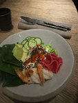 Мне кажется единственное место на этой улице с адекватными ценами, поэтому людей много. Встретили с улыбкой и проводили за барную стойку, поскольку все столики были заняты. Интерьер современный, неинтересный, в тёмно-серой тонах. Барный стойка на втором этаже открывает вид на кухонную зону и видно как поварастараются. Все что брали понравилось, салат Аля цезарь, котлета из трески слегка взбитая, и Боул. Обслуживание хорошее, доброжелательное официанты