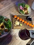 Начну с хостес 🥴 вообще хостес -это самое первое , что мы видим 🤌🏼ощущение , что я пришла к ней домой без предупреждения 😁хотя хостес , как и её выражение лица легко поменять…и ещё с гардеробом вопрос , он прям при входе маленький и несуразный 🙄 Вообще место неплохое , нас посадили наверху и выделили 1.5 часа . Официантка очень милая девушка , просто душка ☺️ покушали вкусно роллы 🔥 сушими тоже свежие сочные 😁 Вообще место рекомендую готовят быстро и вкусно , персонал вежливый и приятный ,внутри уютно , хоть и столы тесно друг к другу . Конектинг пипл ну 🤌🏼🫂