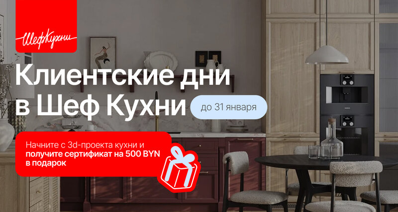 АКЦИЯ Шеф Кухни январь 2026 Скидка 35% на все модели кухонь собственной линейки Шеф Кухни