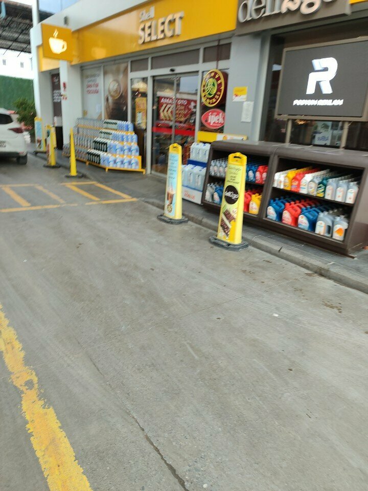 Good refueling. The tanker will fill the tank himself, you will have to pay. Tea, coffee, rolls, minimarket, toilet. Tire pumping and maintenance. water
