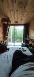 Мало места в домике, для 2 взрослых и ребенка очень тесно. Домик отапливается от теплого пола, наверху спать очень жарко, но если убавить отопление, то внизу холодно. В домике нет даже стула, вещи положить некуда. В туалете вообще не развернуться, а в душе вода плохо уходила. Если просто переночевать и ехать дальше, то пойдет. Единственный плюс - вид из окна.