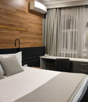 Необычный отель. Само здание - это прям 90-ые. Не только по атмосфере, но и ремонт как будто бы делался тогда же. Поэтому какое же было удивление увидеть современный номер со свежим ремонтом, над которым явно поработал дизайнер. Я говорю именно о "Роскошный трехместный номер с балконом", потому что судя по фотографиям в сети - не над всеми другими номерами дизайнер в этом отеле успел поработать) И так "Роскошный трехместный номер с балконом" это: • Удобные кровати. • Стильный интерьер. • Интересное световое решение. • Хрустящее белое постельное белье, халаты, тапочки, банные принадлежности. • Брендированные полотенца. • Даже туалетная бумага с претензией на полулюкс. Очень большой(по сравнению с другими объектами размещения) телевизор с плоским экраном. Прям мини-кинотеатр. Это классно! Мы от него кайфанули) Понравилось, что в небольшом номере уместили отдельно столик для перекуса и отдельно рабочую зону. Это очень нужная штука. Все цветовые решения в комнате подобраны со вкусом. Видна рука профессионала. Два дня пребывания оставили приятное впечатление.