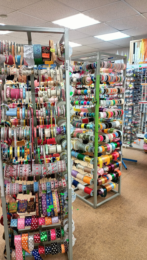 Хороший магазин. Небольшой, но выбор неплохой. Очень разнообразная фурнитура: кружево, пуговицы, тесьма и т.д. Не очень удобно, что большинство тканей в рулонах лежат на полках за спиной продавца, т. Е за прилавком. Ткань- такая вещь , которую необходимо пощупать, приложить к себе, сравнить с другой...а тут смотри на неё на расстоянии двух метров. И ещё один негативный момент- невозможно поставить рядом машину, всё забито или запрещающие знаки. Приходится топать метров 150-200.