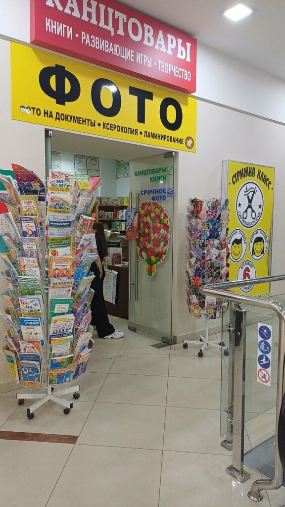 Небольшой магазинчик, но там можно купить всё необходимое, ручки, блокноты, карандаши, раскраски, открытки