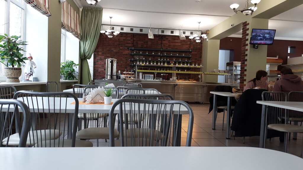 Большое светлое помещение ,удобная планировка много столов,большой выбор блюд цена средняя по городу ,чисто приятно ,таких залов покушать на чмз очень мало,мне нравиться
