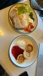 Забегали рано утром на завтрак, Приятная атмосфера, маленькие/уютные столики с панорамой на дорогу) Везде есть розетки - можно поработать. Оформить заказ тоже очень легко. Единственное - мы дозаказали хлеб, но его нести в районе 15 мин, когда еда уже остыла, если бы можно было такие моменты как-то исправить на кухне (а не готовить в порядке строгой очереди), то было бы вообще супер!) По еде: Сырники очень сытные, наелась двумя)) Мужу его завтрак показался сначала маленьким, но потом - тоже сытным. Это все вышло в районе 1200₽ (без напитков). Официанты приветливые девушки, очень приятные.