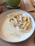 Начнём с того, что официанта с меню мы ждали минут 15 точно при пустом зале. Чтобы сделать заказ ожидание было ещё дольше. В результате взяли лазанью и пасту Альфредо. По итогу лазанья была размороженная, плавала в воде, вместо соуса бешамель была сметана. Паста вместо сливочного соуса была щедро заправлена топленым сливочным маслом, как у бабушки в детстве. К чаю подали лимон… ощущение, что он ждал меня уже неделю в нарезанном состоянии. Шеф-повар не соизволил даже выйти лично и поговорить, предпочитая перекрикиваться через окно на кухню. Как оказалось - он готовит из того, что есть, руководствуясь своими собственными представлениями о рецептуре. Меню заведения по-видимому сотрудники не читают. Извинений, конечно же, не последовало. Крайне не рекомендую данное заведение, если не хотите отравиться