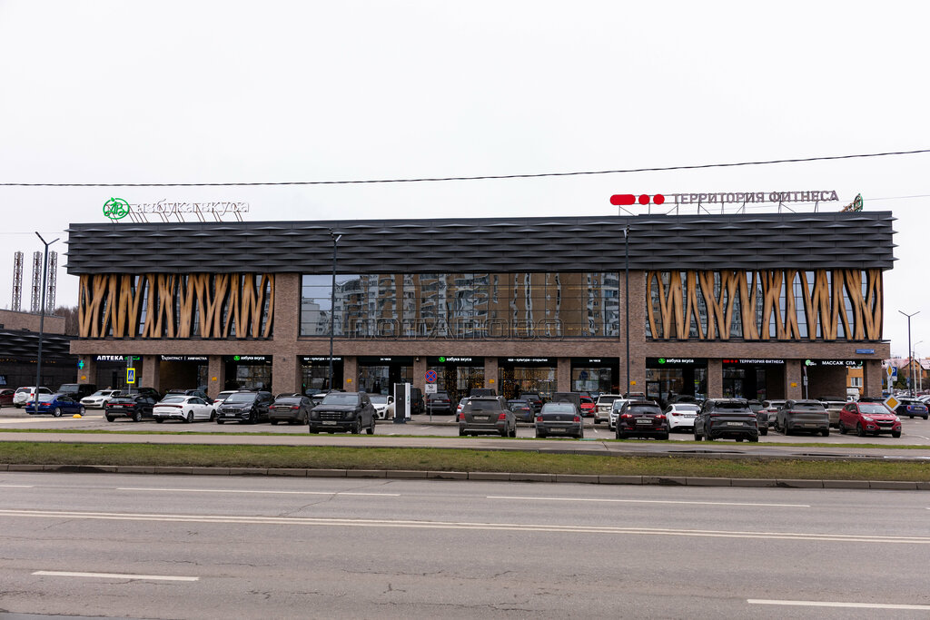 отличный небольшой торговый центр, включающий в себя азбуку вкуса, к ней претензий нет, все отлично, качественные продукты из-за границы, есть аптека, самое главное, что есть банкоматы и еще фитнесс центр, там очень круто и за счет панорамных окон вечером открывается вид на закат