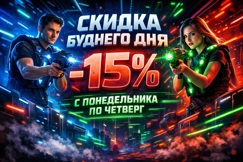 ◆ комната отдыха на 2,5 часа ◆ 60 минут лазертага с звуковыми и световыми эффектами ◆ 15 минут перерыв, инструктаж ◆ 1,5 часы комнаты отдыха, игры в мафию или другие настольные игры Стоимость программы: 10900 руб. за 10 человек на 2,5 часа