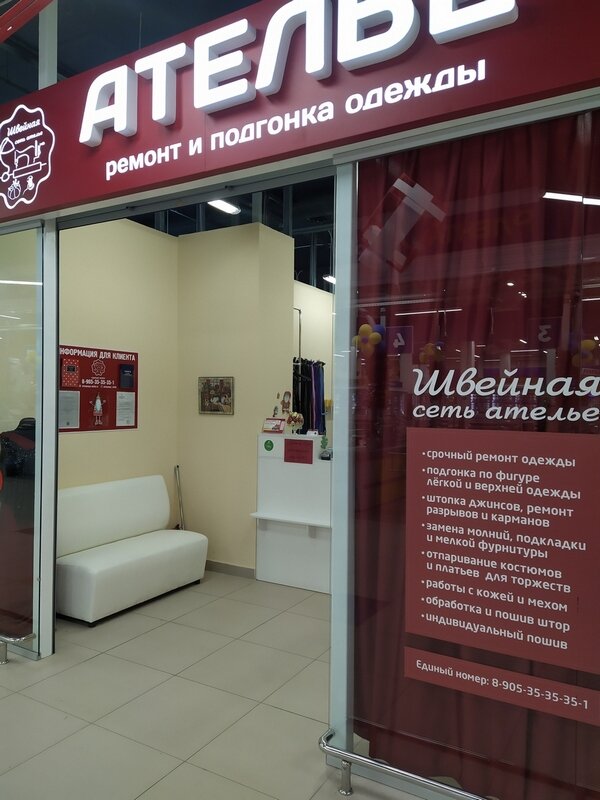 Очень хорошее ателье, приносил джинсы на ремонт, все супер! А еще и скидку сделали предновогоднюю ! Рекомендую !