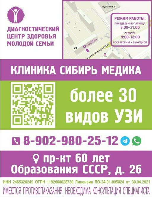 Недавно посетила клинику «Сибирь Медика» и осталась очень довольна качеством предоставляемых услуг. Эта клиника предлагает широкий спектр медицинских услуг, включая ультразвуковую диагностику, функциональную диагностику и терапевтическое консультирование. Хорошее качество ультразвуковой диагностики. Врач УЗИ Мачулина Светлана Николаевна провела обследование с вниманием к деталям . Объяснила все этапы процедуры и ответила на все мои вопросы. Клиника чистотая и аккуратная, что создает приятную атмосферу . Администраторы вежливы и отзывчивы. Я была приятно удивлена, что можно достаточно быстро попасть к врачу без долгого ожидания. Специалисты подходят к пациентам с вниманием и заботой. Для семей с детьми есть игровая комната, где маленькие пациенты могут провести время под наблюдением интерна-педиатра, что очень удобно для родителей. В целом, я рекомендую клинику «Сибирь Медика» всем, кто ищет профессиональный и внимательный подход к своему здоровью. Здесь работают хорошие специалисты.