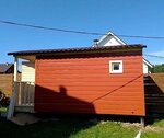Роскошная баня с террасой. Состоит из двух соединяемых модулей - баня и терраса. Каждый модуль доставляется на манипуляторе. На участке происходит соединение.