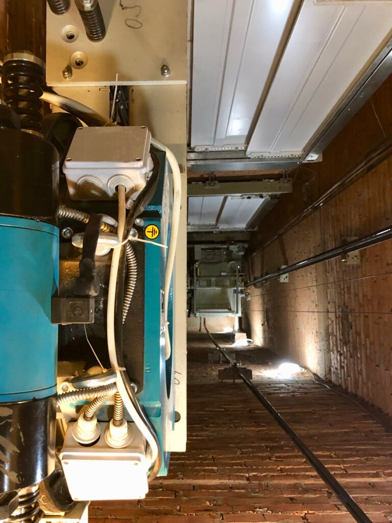 Ежемесячное техническое обслуживание (станции управления, частотного преобразователя главного и дверного приводов, тягового электродвигателя, купе кабины, противовес, направляющие и прочее механическое и электрическое оборудование подъёмника).