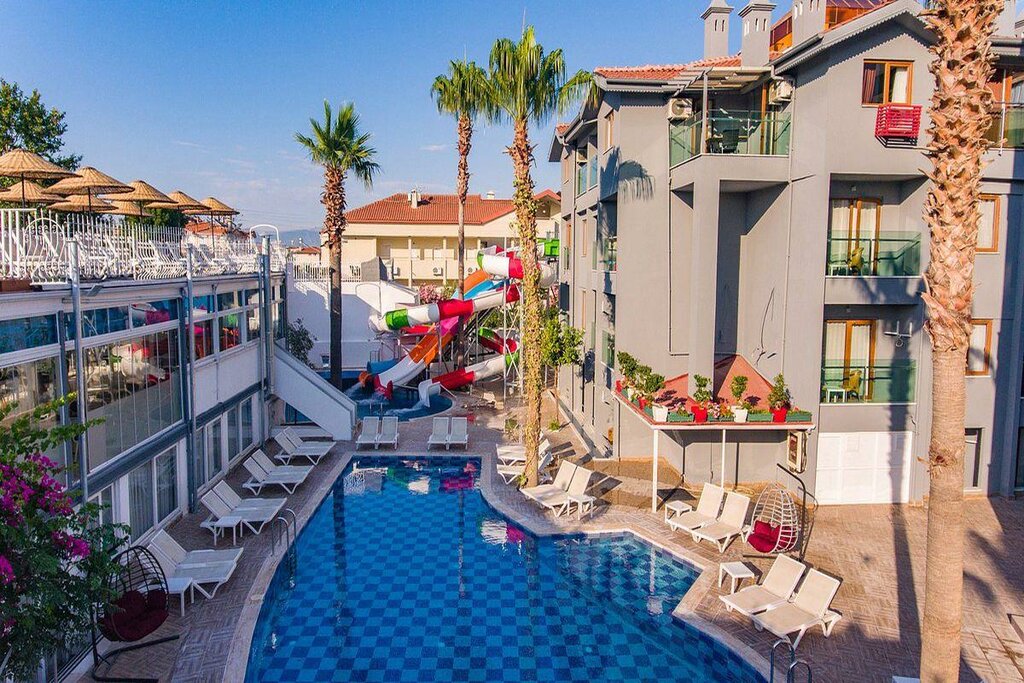 Небольшой, тихий, спокойный отель без претензий на фешенебельность, без анимации, без спортивных игр и спортзала, но с неплохим питанием (хотя десерты могут быть более изысканными) и хорошими водными горками. Регулярно убирают в номерах, хотя не сказать, что очень хорошо. Каждый день чистится бассейн. Довольно маленькие номера, но приятно удивило наличие холодильника. Бесплатная сауна с 16:00 до 18:00, массаж за отдельную плату. Дружелюбный, внимательный персонал, многие сотрудники понимают по-русски. Бесплатный Интернет только в фойе первого этажа, за Интернет в номере придется платить $2 в день. Насчет пляжа: до моря нет никакого автобуса, как можно прочитать в некоторых описаниях на сайтах. Пешком до моря по кратчайшему пути – минут десять (вы же не хотите в Турции набрать вес, верно?), но до собственного пляжа отелей Joker придется пройти налево еще метров 400. Поэтому рекомендую от отеля срезать угол и идти не сразу вниз по бульвару, а по диагонали по улицам №1060 и 1069 мимо отеля Sunlight Garden. Затем слева будут отель Raga и полицейский участок, и на выходе вы сразу упираетесь в собственный пляж. К тому же на обратном пути не будет резкого подъема в гору, как если идти к морю по кратчайшему пути. Прямо на пляже отеля расположены видные аттракционы, что имеет свои плюсы и минусы (минус в том, что купаться перед пляжем нельзя и приходится переходить на пляж соседнего отеля, который из-за этого становится чуть более людным). Если отель вам нужен, только чтобы спать, есть и принимать душ, а остальное время гулять в Сиде или ездить на экскурсии, то сложно придумать вариант лучше. За те деньги, которые просит Joker Vista, очень легко закрыть глаза на его возможные недостатки. Это один из самых дешевых и одновременно самых близких к центру Сиде отелей. Здесь можно нормально выспаться ночью, потому что вы не попадаете в эпицентр ночной жизни, под рукой вся инфраструктура, кафешки и магазинчики, ближайшее местное турагентство буквально за углом, до старого города Сиде каких-то 20 минут ходьбы, и около 10 минут до торгового центра «82 Sali Pazari» (на площади с флагом), где есть все и дешево. Тут же продуктовый магазин Migros и через дорогу LC Waikiki. Можно даже пешком сходить до главного торгового центра Манавгата Novamall – около 4 км.