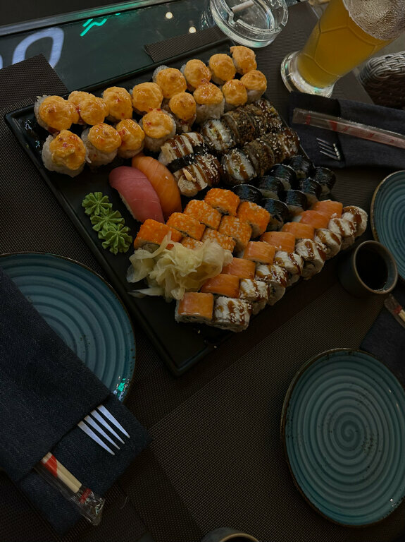 Цены московские . По вкусу такое . Покушать можно но не вкунсо . Брали бургеры с курицей и хотдоги, пришлось дополнительно брать соус было сухо, булки пересушены. Том ям неплохой и цена норм по сравнению с другими местами. Роллы: те что в пантровке в сете были очень сухие и пережарены вилимо в старом масле привкус такое себе . Рис в роллах клеклый переварили или переборщили с уксусом рисовым так что липнет к зубам В целом обслуживание хорошее