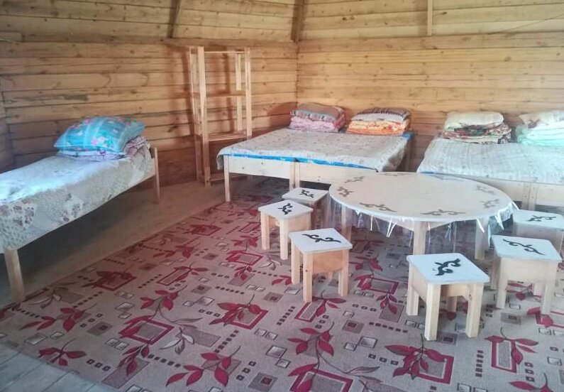 Хорошие комфортабельные домики, но что с настройкой воды было не в порядке. Но мы в первый день сполоснулись, а во второй баню заказали. Территория большая с национальным калоритом.Есть для туристов и национальная юрта.