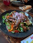 Решили посетить атмосферное место в городе. Интерьер интересный, различные фигурки и картины на стенах. Встретили правда с видом "че дома поесть не могли". Цены в меню довольно высокие. Впервые попробовали томьям с курицей, получился довольно не плохой. Однако в блюде с птитимом и стейка из филе бедра, луковые кольца оказались полусырые. И это блюдо мы ждали больше получаса при том что был ещё всего один стол. За смазанное и неоднозначно впечатление одну звезду сниму