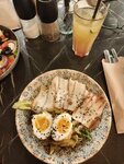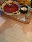 Блюда понравились, порции достаточно большие, но тыквенного супа мало. Интересно подают чай. Из минусов - долгая подача блюд и не хватает приборов при полной посадке. Это ужасно. Нам подали вторые блюда и ложки. На просьбу принести вилочки, мы ж не на поминках, официант ответила, что сейчас полная посадка и столовых приборов на всех не хватает :) Правда спустя пару минут - принесли вилочки, наверное у кого-то отобрали.