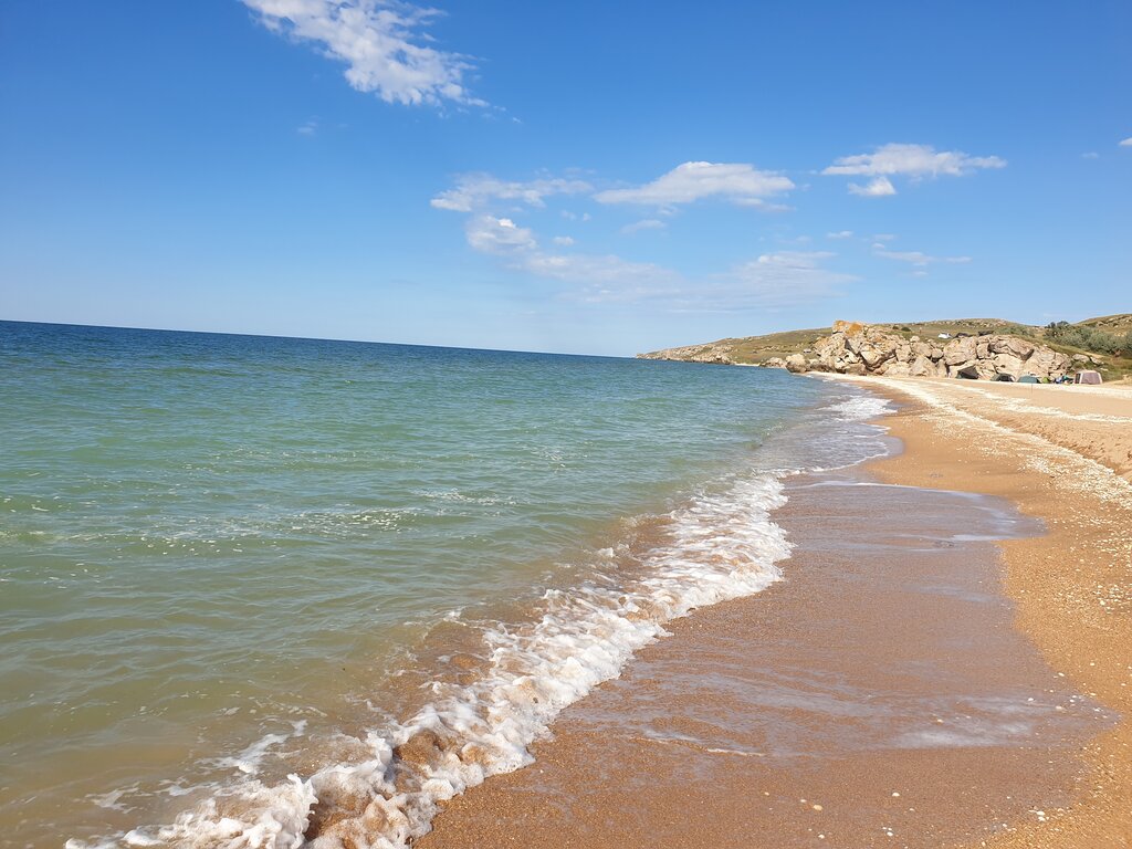 Безлюдное местечко, чистый ракушечно-песчанный пляж, теплое, а самое главное чистое Азовское море, пейзажи, как фильмах. Очень красиво. Но добираться до этих мест только на автомобиле.