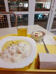 Еда дешево комплексный обед за 350 руб можно взять при чем реально вкусно. Чистенько. Красивая подача. Быстро, горячее всё. Нежное пюре, нежная курица в сливочном соусе вообще огонь 🔥. Рекомендую данное заведение буду постоянным клиентом.