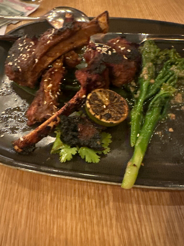 The food is disgusting. Tom yam ordered it. It doesn't taste and look like Tom yam at all. I also ordered a barbecue lamb. It looked and tasted like coal. Only a cocktail is delicious. I waited a very long time for the lamb (apparently they forgot about it on the stove)