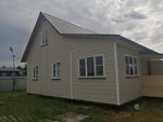 Домик каркасный 6.0х6.0 м. на свайном фундаменте от строительной компании "Ск Муром". Внешняя отделка имитацией бруса. Утепление 150 мм. каменной ватой.