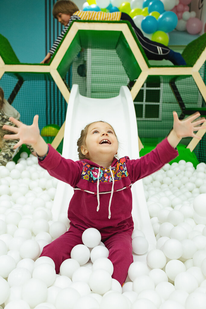 Хорошее место. Несколько разнообразных аттракционов для детей: батут, горка и бассейн с шариками, подвесные качели. Ребенок доволен!