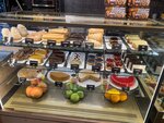 Ассортимент хороший, можно выбрать что-то из готовой еды. Пирожки и пирожные вкусные. Цены завышены. Атмосфера внутри приятная, интерьер тоже, но персонал постоянно по несколько раз переспрашивает по поводу заказа: дело в глухоте или близости несмолкаемого Проспекта, не знаю.