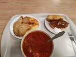 Простая столовая, по-домашнему вкусно, но не очень бюджетно. Пюре 100₽, рыба 200₽, борщ 150₽. С двумя пирожками вышло 570 и это без салата и компота. Борщ очень наваристый и достаточно мяса.