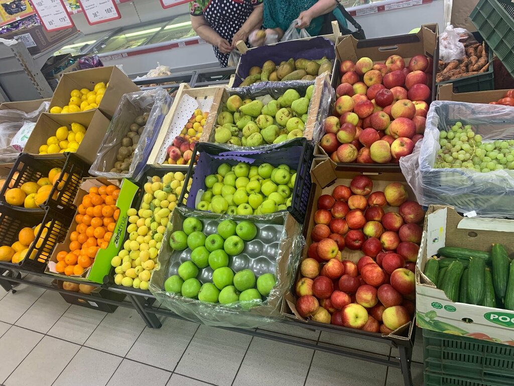 Хороший продуктовый магазин,свежий хлеб,овощи фрукты.Можно купить мясо свежее,курицу, окорочка,рыбу.Так же есть стеллажи со сладостями.