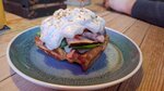 Мы тут были с другом в воскресенье. Если честно, я вообще не думала, что в Кировском районе (на пересечении Жукова и Ленинского) может быть что-то достойное. Но я ошиблась, к счастью. Крутой бар, народу немного. Официантка Полина обслуживала прекрасно. Вовремя подходил, убирала посуду, давала полную информацию по меню. Что касается еды: мое мясо было очень вкусным и нежным с перцем, сыром, красным луком и аджикой+поджаренный хлеб. Вафля с ростбифом, которую принесли моему другу, оказалась буквально деревянной. К нам подошел менеджер и без лишних разговоров блюдо нам сделали новое. Десерт был тоже отменный. Шоколадный кекс с мороженым и рафаэло. Прямо объедение. В подарок дали настойку В общем, очень рекомендую к посещению