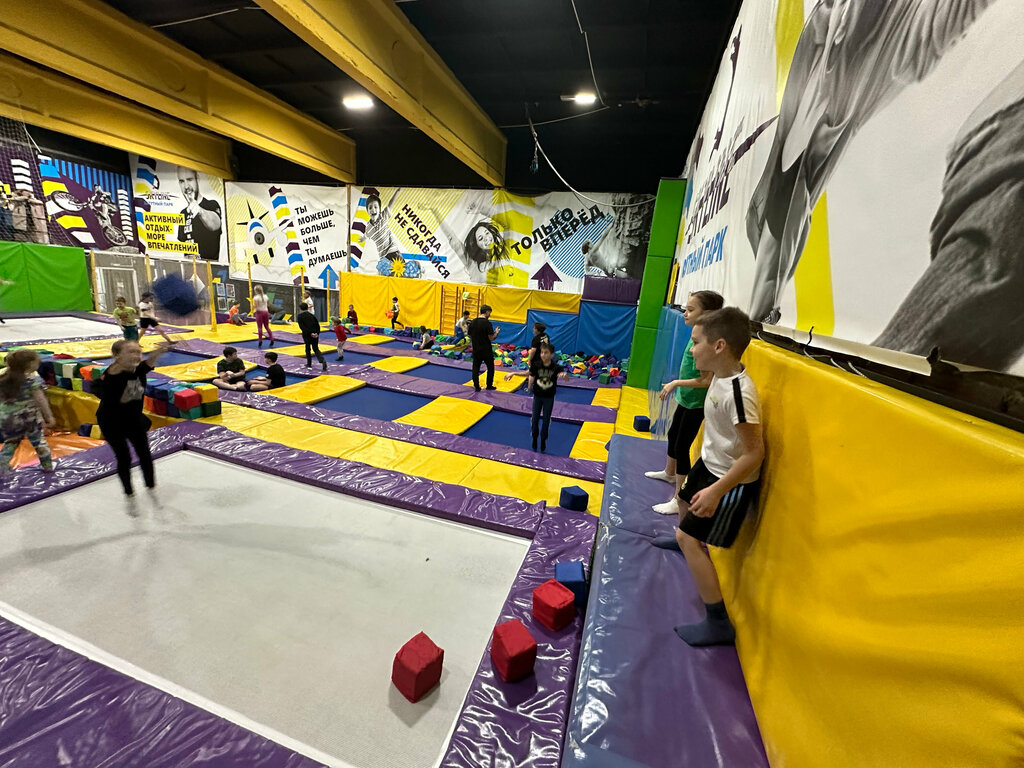 Как инструктор б/ц который проработал в этой сфере 2 года (не в этом б/ц) могу сказать что батутка не плохая, но и не прям хорошая, из минусов это очень маленькое расстояние между сетками и полом (это скорее минус для больших дядей) и не глубокие паралоновые ямы (со стены спиной туда лучше не прыгать), а так в принципе батуточка хорошая, для детей в самый раз и ценник прям радует (за 2 часа 600 рублей это прям по божески)