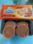 Купили вафли с варёной сгущёнкой. Были свежие. Вафля мягкая и много начинки. Было вкусно к чаю