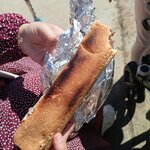 It is quite an interesting and original urban fast food. It resembles a large homemade sandwich with filling. Long for the whole loaf)) If you are a fan of such butters, then you will like it. Minus the star for the long cooking and the girl sometimes confuses customers.