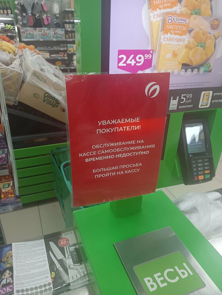 Пожалуйста, наведите порядок в работе касс самообслуживания. Из 3 касс работает одна. Причем закрывают их под видом неработающей сотрудники магазина. Захотели открыли, захотели закрыли. Открывали для покупателей, для удобства. Теперь один кассир на кассе и куча народа и касса самообслуживания тоже одна и на ней куча народа. И да, кассы самообслуживания действительно работают потому что кассиры снимают объявление о поломке и через пять минут как человек обслужился наклеивают обратно