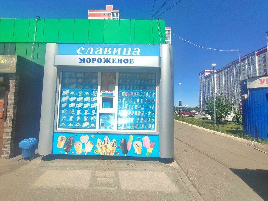 Нам очень нравится мороженое СЛАВИЦА, мы всегда берем, когда проходим мимо и видим данные ларёчки , очень удобно подошел купил и идёшь кушаешь вкусное мороженое , особенно летом это же замечательно. Как хорошо, что есть в нашем районе такой ларёк. Я живу неподалеку в 27 доме на ул. Рокоссовского. Удобно, дети быстренько сходили, купили мороженное на всю семью и все довольны. Цена приемлемые-мороженное вкусное.