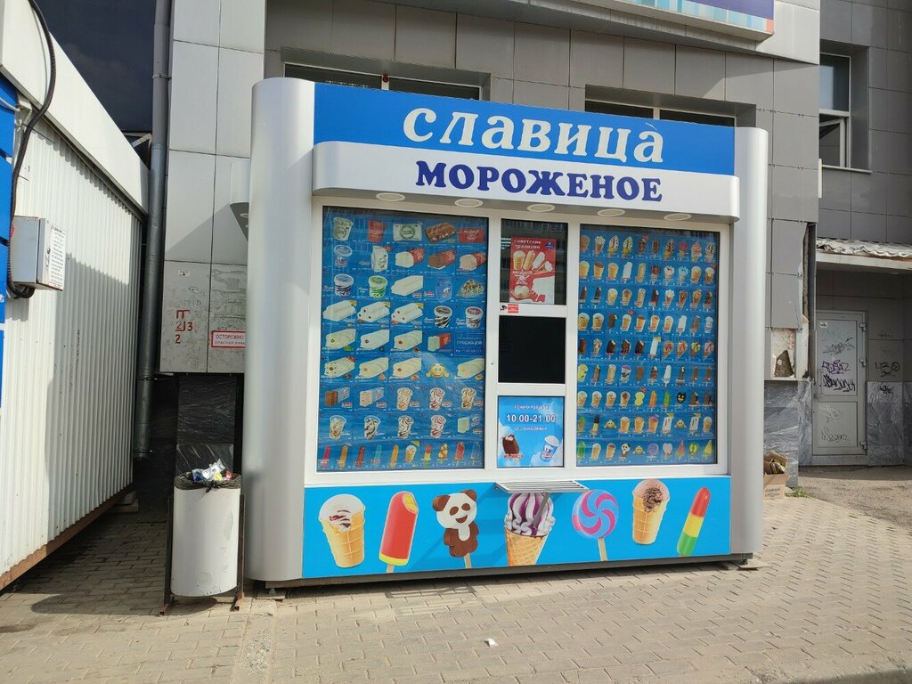 Много сейчас появилось таких киосков с мороженым Славица. Почти на каждой остановке. Летом конечно выручает, когда гуляешь с коляской. Ассортимент большой, есть и натуральное и с добавками, и без. Мороженое на любой вкус и кошелёк.