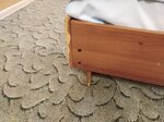 Номера грязные! Душевая кабина в плесени, душевая лейка текла по шлангу так, что невозможно пользоваться, униз протекает и вода шумит круглосуточно. Телевизор был, но пульт не рабочий. Шторы в жирных пятнах и меньше окна по размеру. В жирных пятнах и стены по всему периметру номера. Приятным и чистым было только постельное белье. Полотенца, вернее обрезки полотенец, по одной штуке. Толи для рук, то ли это были банные, не понятно. Сказали " у них так положено, по одному на человека". Для тех кто думает попасть с утра, не надейтесь! Над вами будет тренажерный зал и с 7-ми утра там раняют штанги и гантели. Проснетесь! Из персонала мы видели только девушку при заселении, она приветливо переписала паспорта и отдала ключи со словами" вам туда ". Так что персонал пожалуй доброжелательный. На фото грязный палас, узкие шторы в жирных пятнах и фрагмент стены над кроватью так же в жирных пятнах.