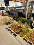 Ассортимент блюд отличный,шашлык безумно вкусный,большой ассортимент коктейлей,персонал приветливый,чисто ,уютно и в вечернее время приятно послушать музыкантов.