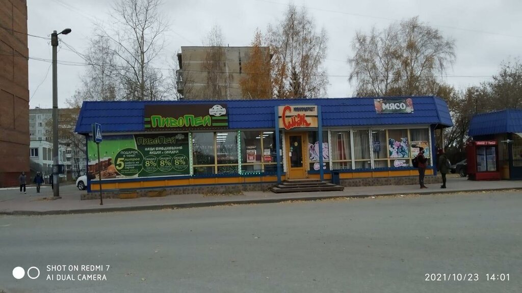 Магазин с одной стороны торгует разнообразным пивом и сопутствующими его товарами, с другой стороны - магазин со стандартным набором продовольственных товаров. Звёзды сняла за то, что однажды чуть не убилась, заходя в продуктовый магазин. Причина - углубление в тамбуре, о чем ни тогда, ни сейчас предупреждения нет.