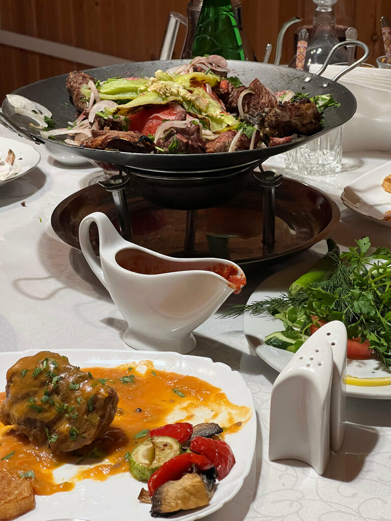 Заехали на ужин в это кафе в октябре 2025 г.. Принесли очень большие порции : хинкала хватило бы на двоих. Лагман густой и ооочень вкусный. Мы ещё взяли хачапури по- аджарски, но не смогли съесть и нам его завернули с собой. Девочки рассказали, что хинкала очень много видов и с чем его подают. Вежливый персонал. Немного тянет табаком из кабинок , в которых отдыхают местные, но это не критично. За весь ужин с нас взяли1000₽.